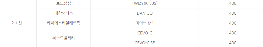 초소형 전기차는 각 400만 원 지원이 된다고 합니다.
