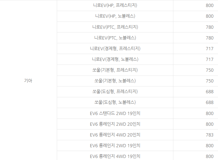 기아의 경우 니로, 쏘울, EV6 모델이 있습니다.