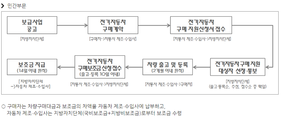 - 전기자동차 구매 보조금 신청 (자동차 제조, 수입사 -> 지방자치단체)