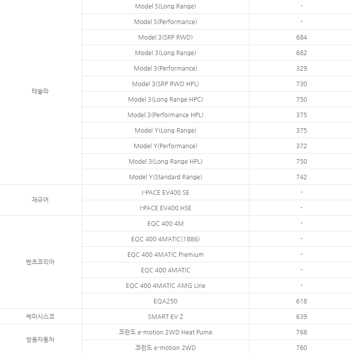 - 전기차 보조금 지원 차량