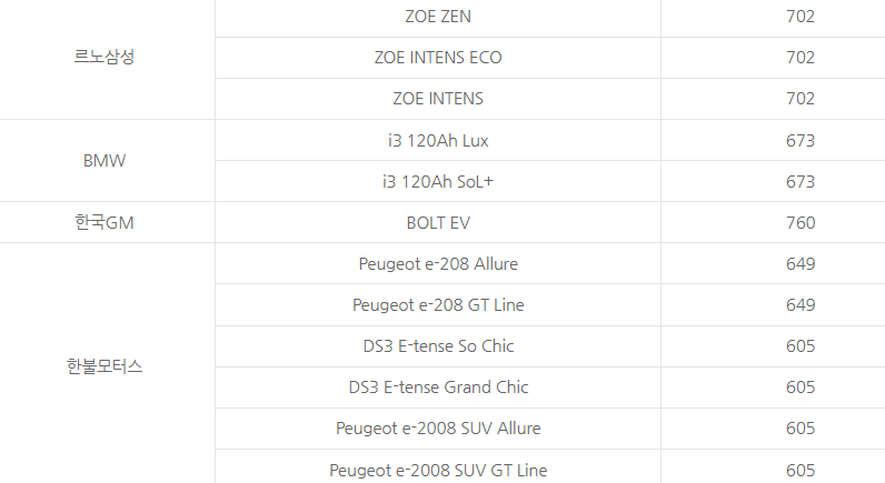 한불모터스의 경우 푸조 모델과 DS3 모델이 605~649만 원 지원됩니다.