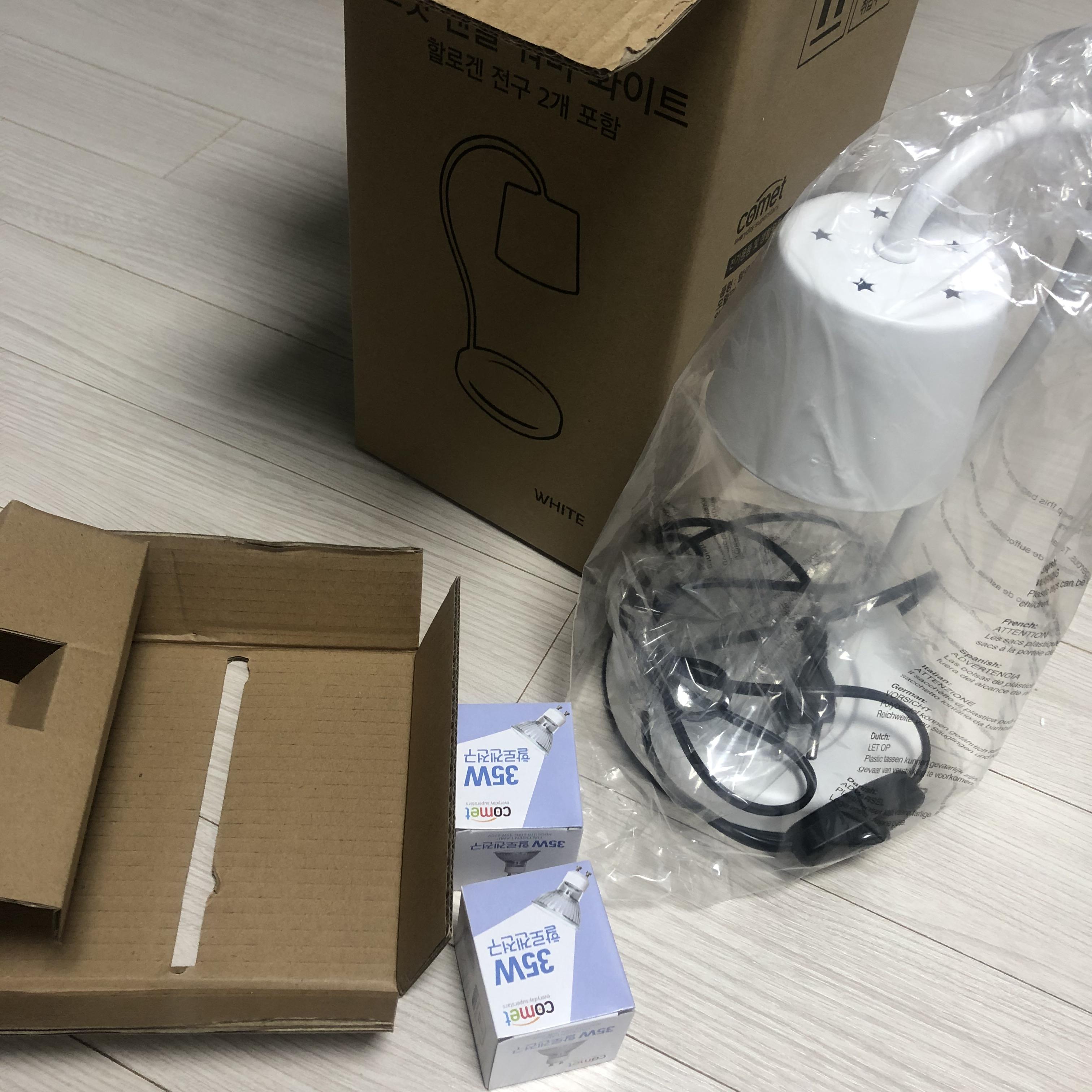 캔들워머 박스를 열면 할로겐전구 35W 2개와 전원코드가 연결된 캔들워머가 들어있었습니다.