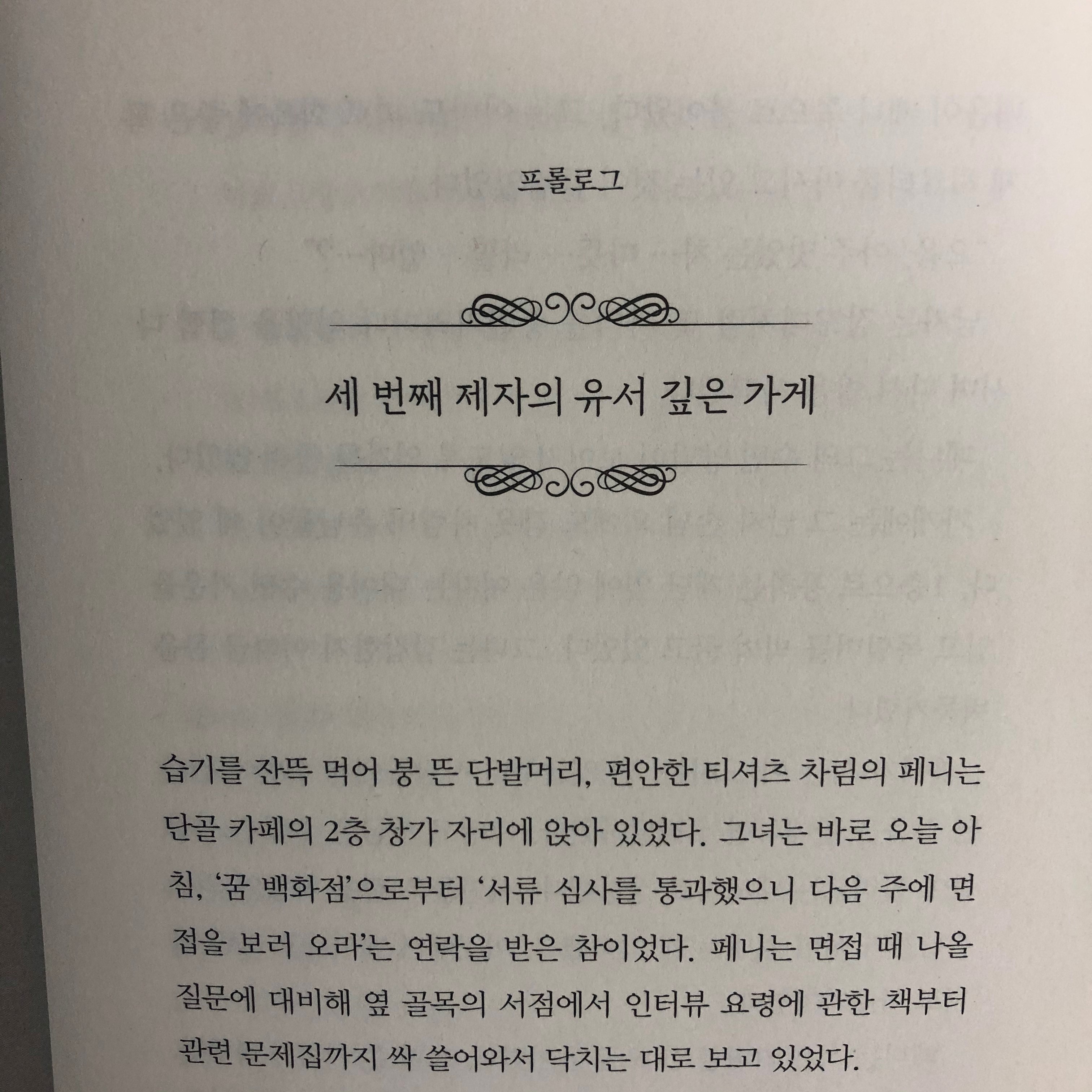 저는 소설책 중에 초반 부분인 프롤로그 부분이 인상 깊었는데요.