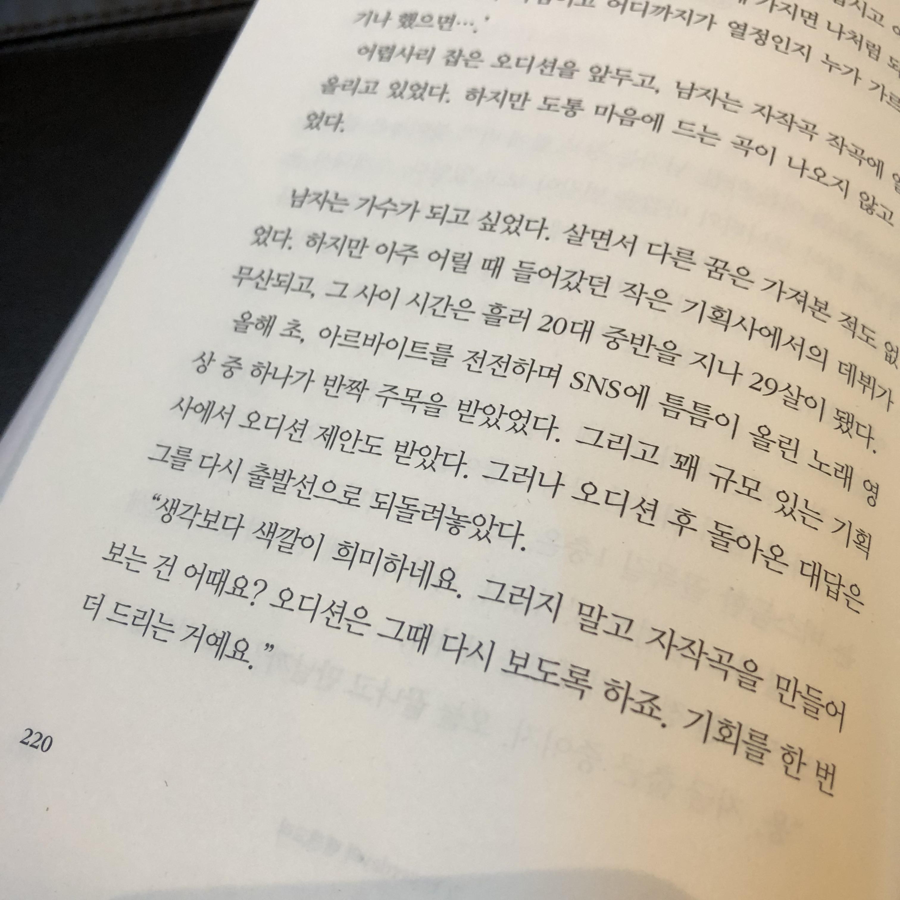 P.220 제 7장의 Yesterday와 벤젠고리에서는 가수가 되고 싶었던 손님의 꿈에 대한 이야기가 나옵니다.