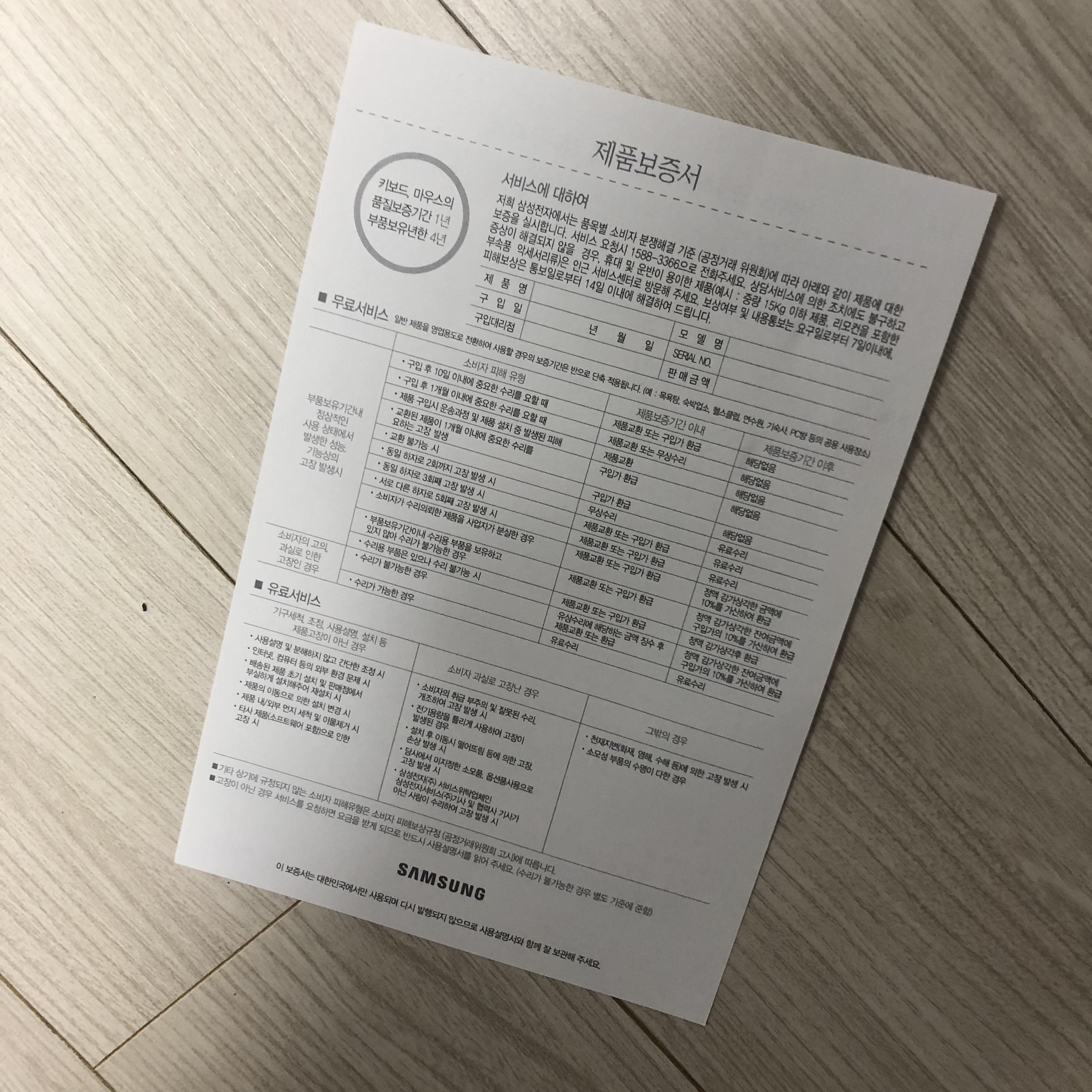 그리고 삼성의 정품 제품임을 보증하는 제품 보증서가 동봉되어있었습니다.
